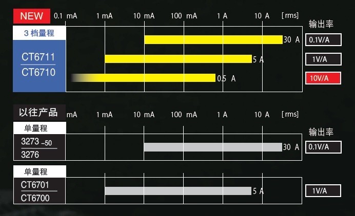 3档量程30A、5A、0.5A,宽广的波形观测